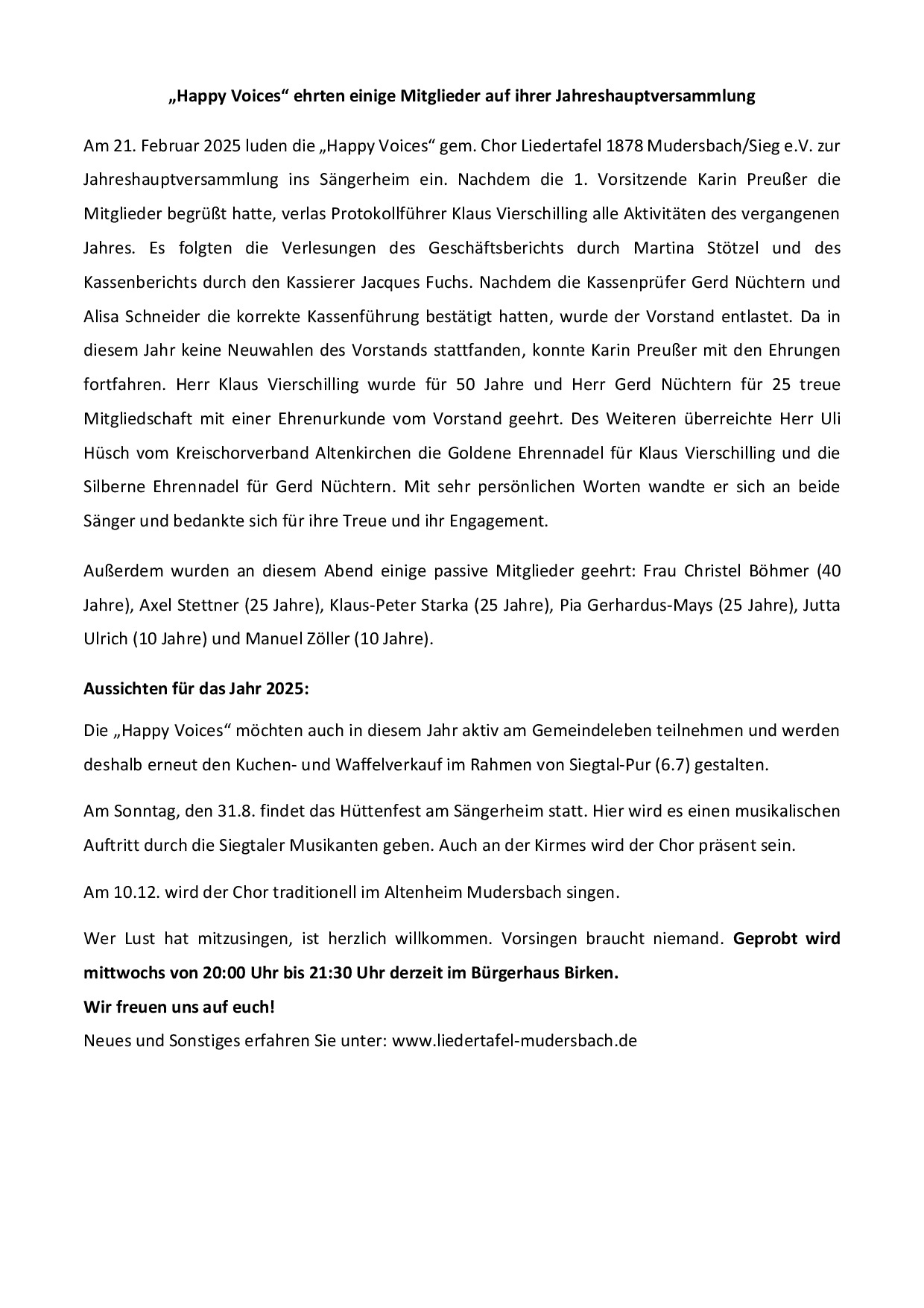 Gem. Chor Liedertafel 1878 Mudersbach / Sieg e.V.
