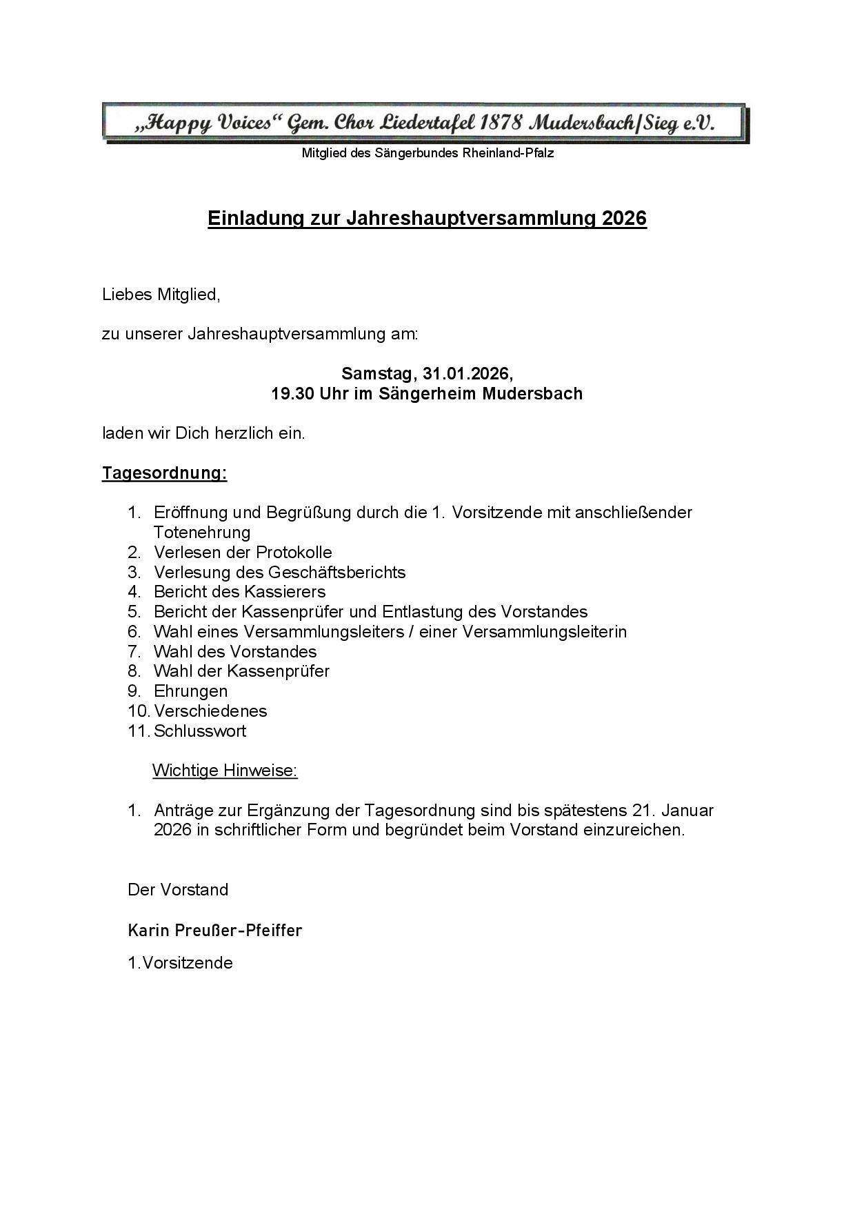 Geprobt wird in unserem Sängerheim in der Siegstraße 11 (Kirmesplatz) in Mudersbach.