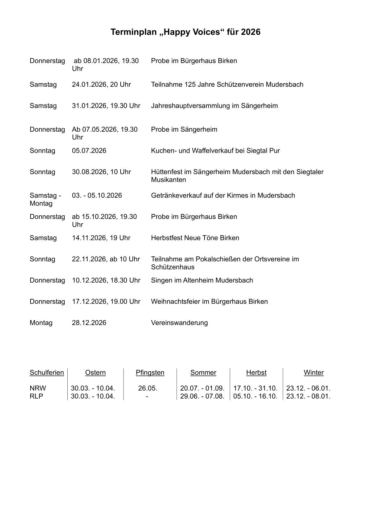 Termine 2026